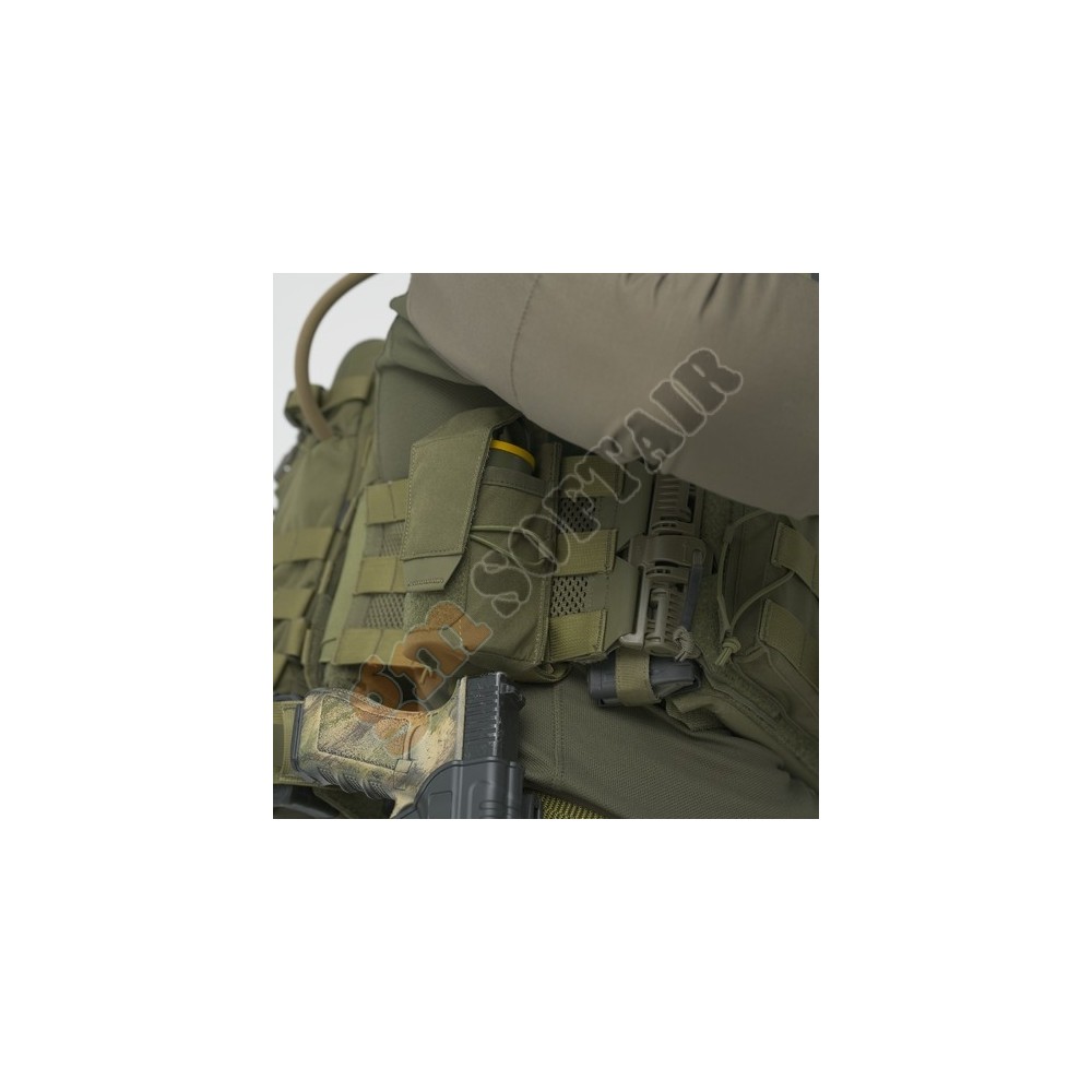 Il Guardian Cummerbund Quick Release è un set di pannelli laterali per il gilet tattico che ne fissano la parte anteriore e posteriore. Oltre ai pannelli laterali, il set include una cinghia extra con fibbia che si attacca a una delle imbracature. Sia il fascione che l'imbracatura sono dotati di fibbie a sgancio rapido con maniglie antiscivolo, che consentono lo sgancio rapido e la caduta del giubbotto in caso di emergenza. Questo set consente inoltre di indossare più comodamente il gilet, eliminando la necessità di slacciare ogni volta la patta anteriore. La fascia ventrale è costituita principalmente da una rete strutturale che fornisce una ventilazione aggiuntiva, anche con l'attrezzatura montata. La superficie della fascia ventrale presenta un sistema modulare compatibile con MOLLE/PALS. Sotto le cinghie del sistema modulare c'è un pannello scheletrico realizzato in materiale Hypalon che stabilizza l'attrezzatura trasportata e fornisce un'adeguata rigidità al pannello laterale stesso.