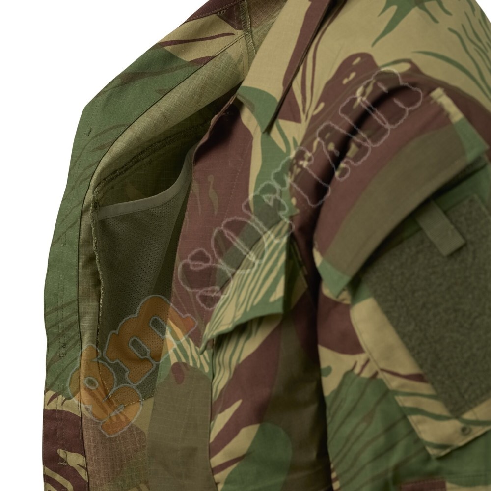 La Raid Shirt è un classico in una nuova edizione. È realizzata interamente in Polycotton Stretch Ripstop (48% cotone, 50% poliestere, 2% elastan) , che la rende leggermente elastica e offre una maggiore libertà di movimento. Questo modello presenta una comoda costruzione raglan . Questo tipo di taglio è raro nelle uniformi, ma è stato adottato dall'esercito americano. Anche l'ultima uniforme militare statunitense, la IHWCU (Improved Hot Weather Combat Uniform), presenta una costruzione raglan.